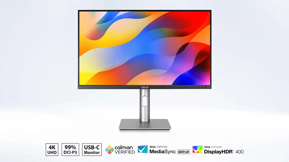 ProArt Display PA279CRV is a 27-inch 4K HDR monitor designed for professional video editors. This Calman Verified display boasts a wide color gamut with 99% DCI-P3 and 99% Adobe RGB coverage and is factory pre-calibrated to Delta E < 2 for exceptional color accuracy. For added convenience, the built-in USB-C® port offers DisplayPort™ support, superfast data transfers, and 96-watt power delivery via a single cable.