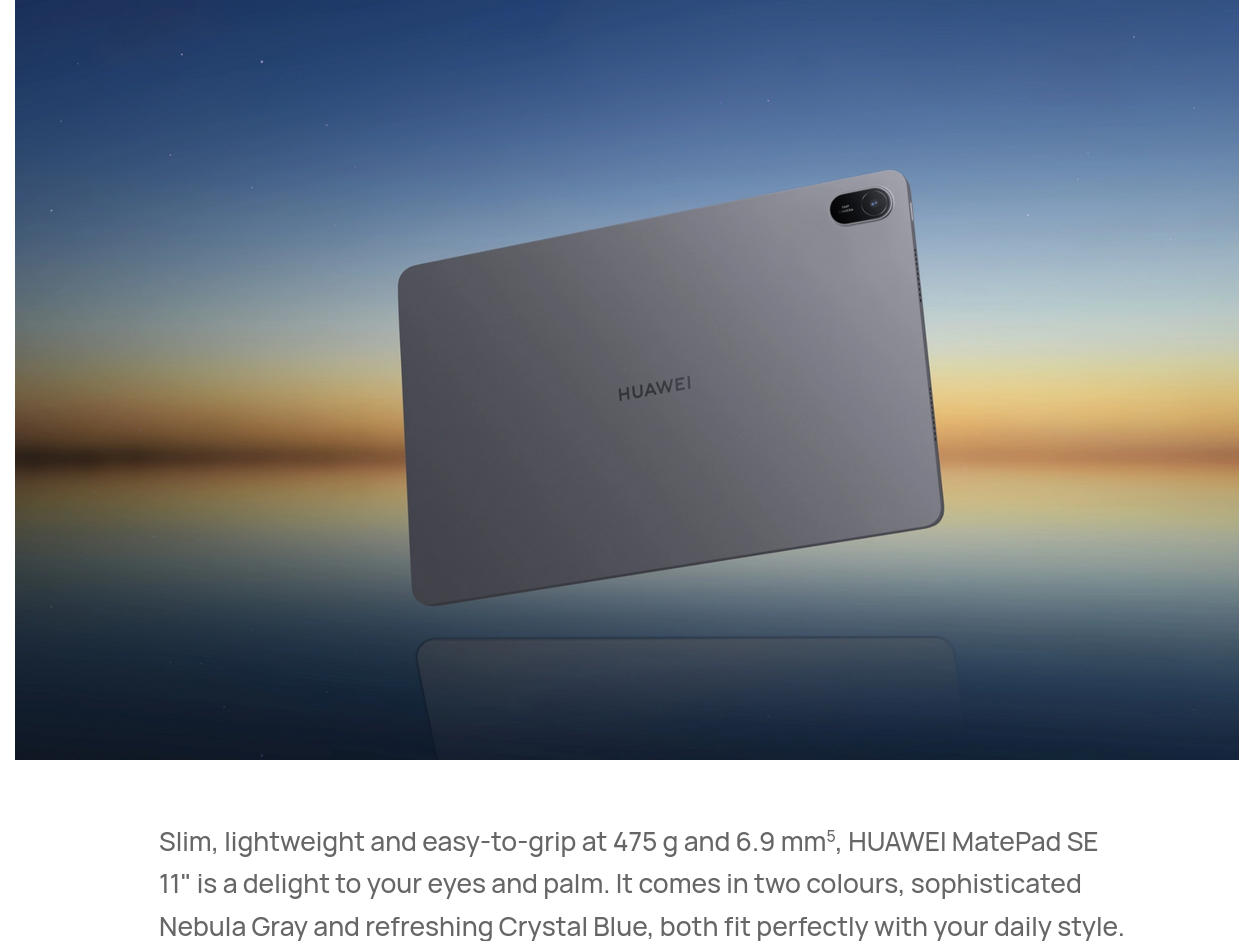 | Display | Size: 11 inches*Screen-to-body ratio: 85% Resolution: 1920 × 1200, 207 PPI *Colour: 16.7 million colours, 100% sRGB (typical)Type: TFT LCD (IPS)*The screen is designed with rounded corners; visible area slightly smaller.**Data from Huawei labs, actual values may vary.**Resolution is based on a standard rectangle, actual effective pixels may be slightly lower. |
