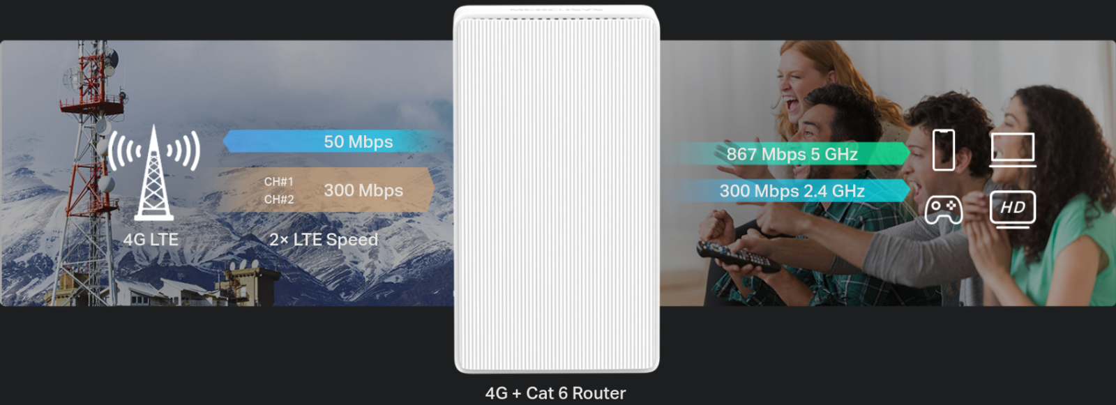 4G+ Cat6 AC1200 Wireless Dual Band Gigabit Router