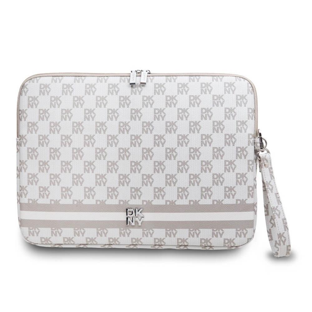 Дизайнерски кожен калъф за MacBook Air 13, MacBook Pro 13, MacBook Pro 14 и лаптопи до 14 инча - DKNY PU Leather Checkered Pattern and Stripe Laptop Sleeve (бежов)