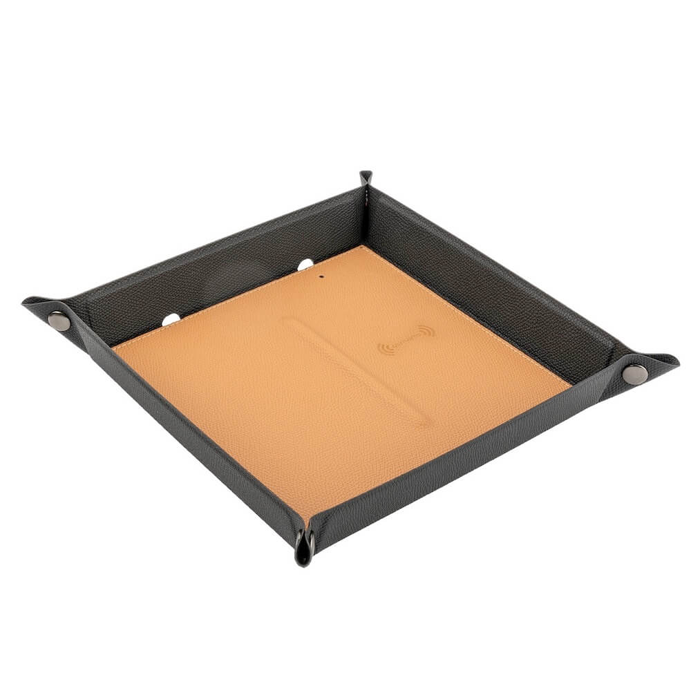 Настолен органайзер с поставка (пад) за безжично зареждане за Qi съвместими устройства - 4smarts Pocket Tray Organizer, 15W (черен-кафяв) (bulk)