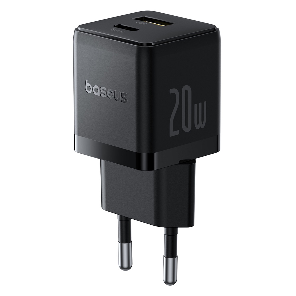 Захранване за ел. мрежа с USB-A и USB-C изходи и технология за бързо зареждане - Baseus Palm Dual Fast Wall Charger 20W (P10111608113-00) (черен)