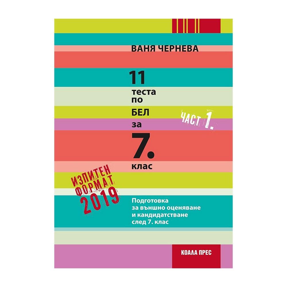 Първата част на помагалото „11 теста по БЕЛ за 7 клас“ съдържа седем теста, които са разработени по изпитния формат, и четири контролни теста по БЕЛ. Всичките единадесет теста следват новата учебно-изпитна програма по български език и литература, като въпросите в тях са съобразени с последователността на темите и художествените произведения, заложени в годишното тематично разпределение по двата предмета.