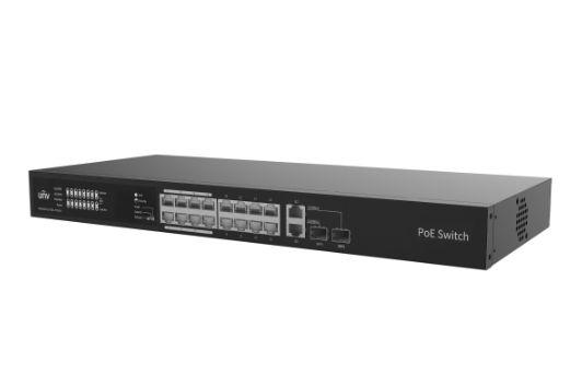 16-портов Layer 2 PoE суич 16 x 100Mbps; ъплинк 2×1000Mbps Combo ports; Протоколи IEEE802.3, IEEE802.3u, IEEE802.3z, IEEE802.3ab, IEEE802.3x, IEEE802.3af, IEEE802.3at, IEEE802.3az; Максимална мощност на порт: 30W. Обща мощност 250W; Комутираща способност: 7.2Gbps, буферна памет 4Мb, Mac table: 16K, Packet forward: 5.36Mpps. няколко работни режима: Default (Normal mode), VLAN (Secure mode), EXTEND (Surveillance mode). port traffic control. Работна температура 0Cº~45ºC. Метален корпус с размери: 440*190*44mm. Режим Extend Mode: POE на разстояние до 250m.