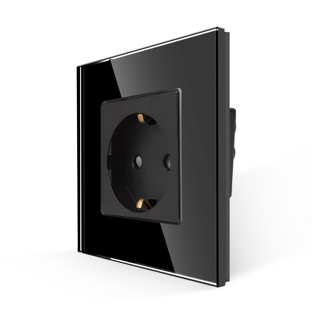 16A Контакт за вграждане със защита комплект със стъклена рамка в обща опаковка готов за монтаж- ЧЕРЕН
