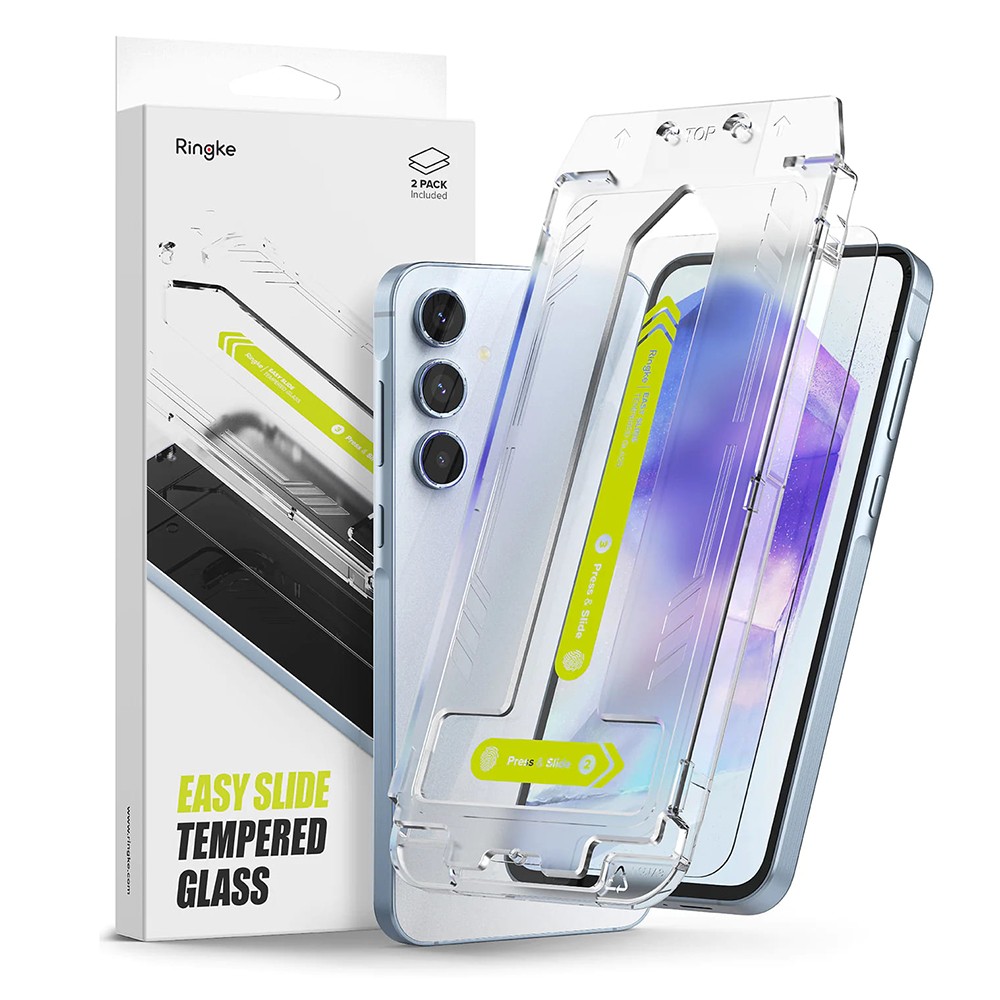 2 броя калени стъклени защитни покрития за дисплея на Samsung Galaxy A55 5G - Ringke Easy Slide Tempered Glass 2 Pack (прозрачен)