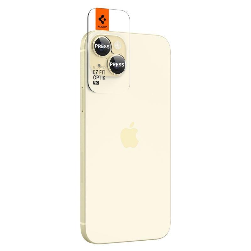 2 комплекта предпазни стъклени лещи за камерата на iPhone 15, iPhone 15 Plus, iPhone 14, iPhone 14 Plus - Spigen Glass tR EZ Fit Optik Pro Lens Protector 2 Pack (жълт)