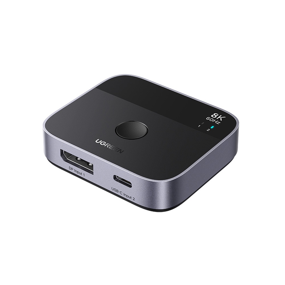 2-портов DisplaPort и USB-C превключвател за компютри и монитори - Ugreen AW701 DisplayPort to USB-C Switch Box 2in1 8K (тъмносив)