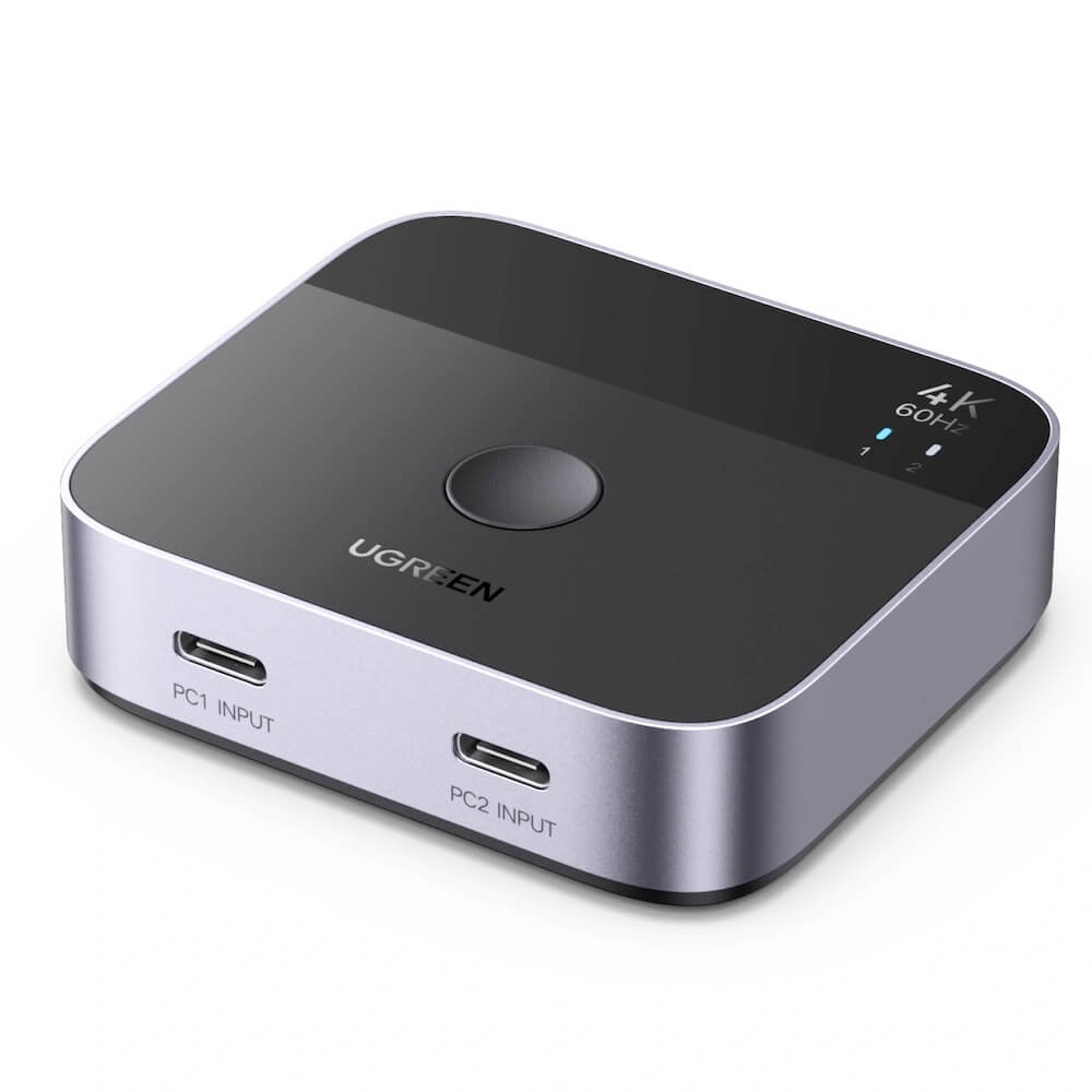 2-портов USB-C към HDMI превключвател за компютри и монитори - Ugreen AW502 Dual USB-C to HDMI Switch Box 2in1 4K (тъмносив)