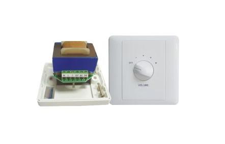 5-степенен трансформаторен атенюатор. Koнтролирана мощност 60W. 20Hz-20kHz. Mono. Аварийно захранване 24VDC .Размери 86х86х70мм.
