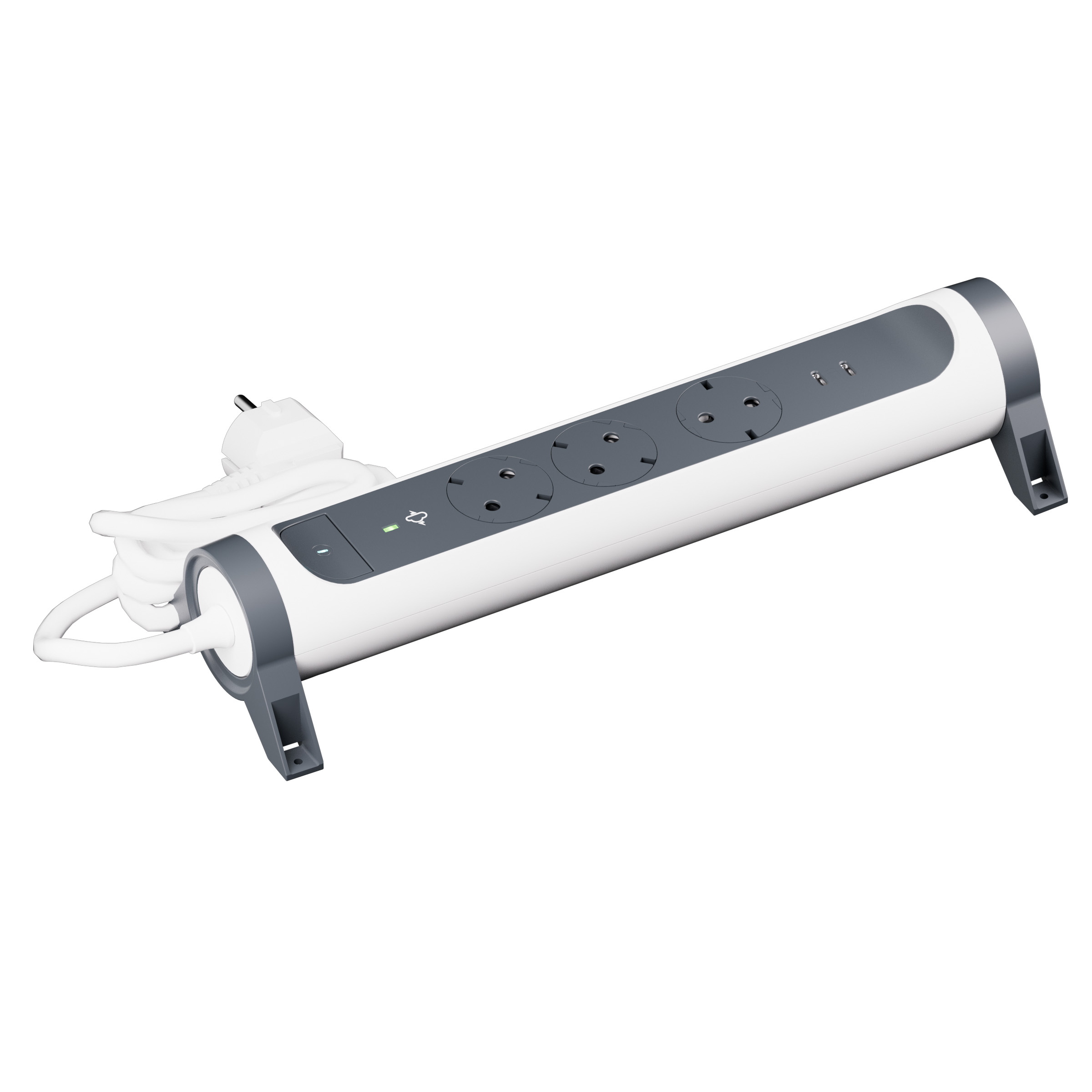694428 Разклонител шуко 3X2P+E, USB C+C, 20W, защита, кабел 1,5 м, бяло/черно, Legrand