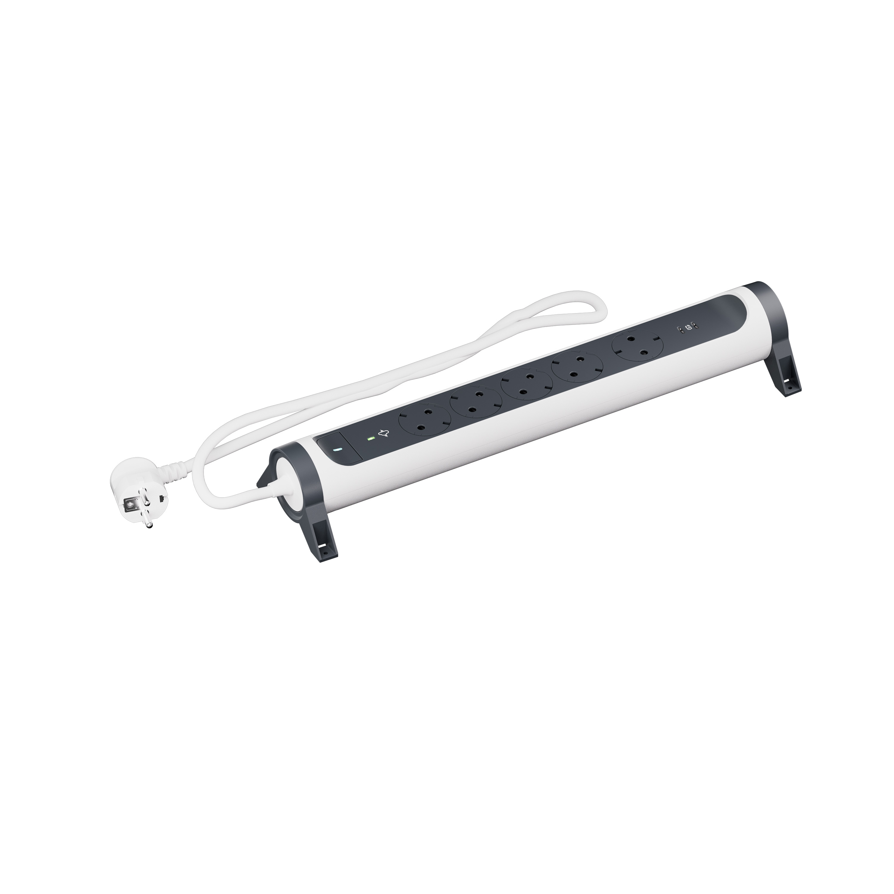 694429 Разклонител шуко 5X2P+E, USB C+C, 20W, защита, кабел 1,5 м, бяло/черно, Legrand