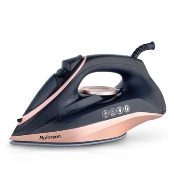 Парна ютия Rohnson R-386, 180 г/мин парен удар, 60 мл. резервоар, керамична плоча, противокапкова система, 2600W, чернаПарна ютия Rohnson R-386, 180 г/мин парен удар, 60 мл. резервоар, керамична плоча, противокапкова система, 2600W, черна