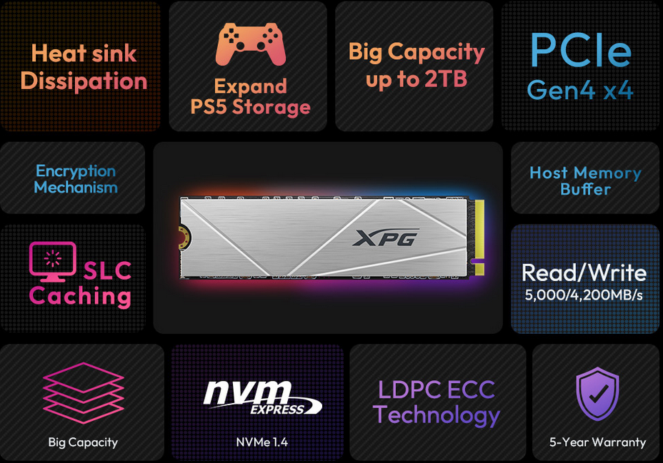 Running out of drive space after installing a few games?! The GAMMIX S60 is the best solution to the PS5's lack of built-in storage capacity. Not only does its form factor fit perfectly with the PS5's memory slot design, but its performance matches official PS5 requirements. Adding more AAA games will not be a problem.