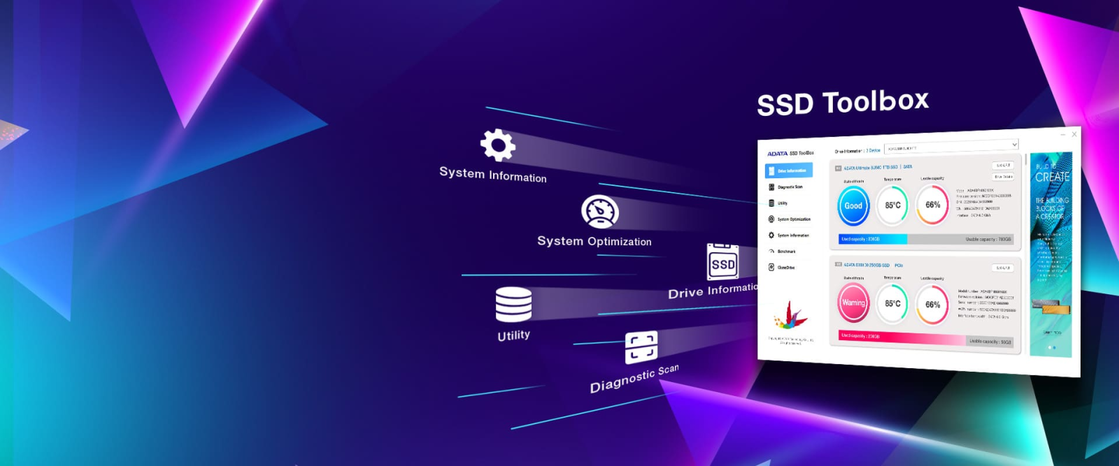 SSD Toolbox helps enhance overall performance and stability through the latest firmware updates, while also resolving occasional minor hardware and software issues. The Dashboard continuously monitors, analyzes, and reports S.M.A.R.T. data, allowing users to check SSD health and remaining lifespan, as well as current operating temperature and storage capacity—so you can stay on top of your SSD status at all times.