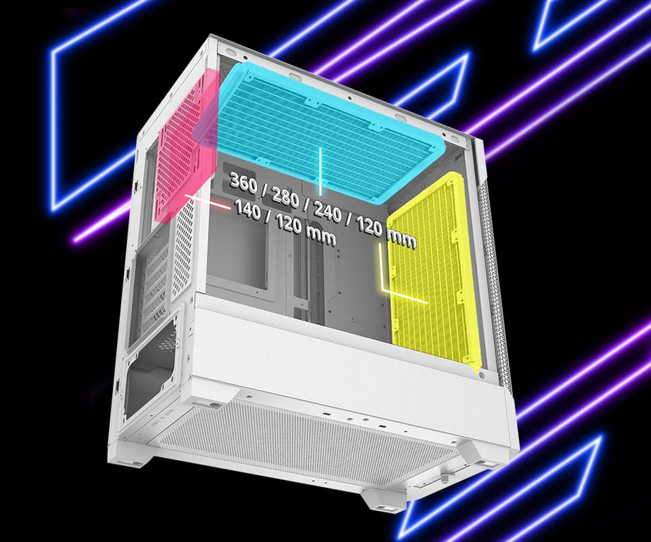 360mm Radiator Support STARKER AIR BTF offers exceptional cooling potential with support for 360mm, 280mm, 240mm, and 120mm radiators at both the front and top, while also supporting up to a 140mm in the rear. This ensures efficient cooling for high-end processors and overclocking, keeping your system running at optimal temperatures, even under heavy loads. | ![]() |