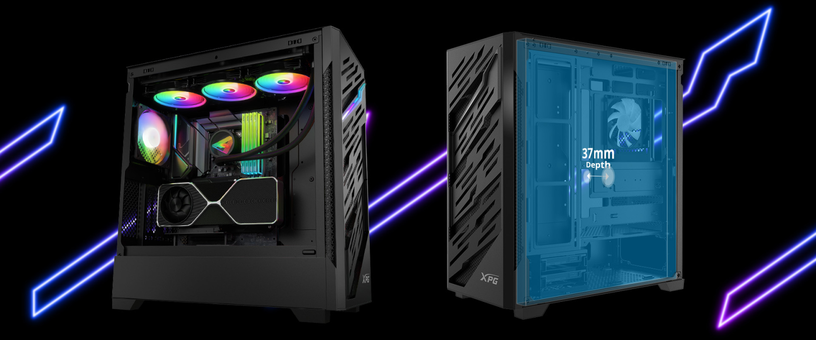 STARKER AIR BTF supports up to E-ATX standard motherboards and is fully compatible with next-gen ATX and m-ATX reverse-connector boards, such as the ASUS BTF, GIGABYTE PROJECT STEALTH and MSI PROJECT ZERO series. These innovative designs hide cables and connectors for a sleek, minimalist look inside the case. Additionally, with 37mm of space behind the motherboard tray, it simplifies cable management and ensures a comfortable fit for both rear and standard cabling configurations.