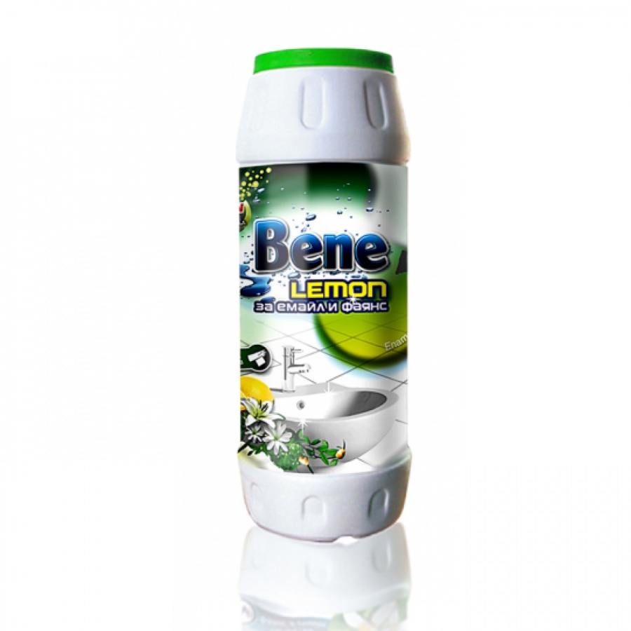 Свежест и чистота с всяко докосване – Bene с аромат на лимон превръща почистването в удоволствие!Абразивният почистващ препарат за баня и WC Bene с аромат на лимон, 500 г, е вашият надежден съюзник в борбата с упоритите замърсявания и варовикови отлагания. Специално разработената формула във вид на прах осигурява мощно действие, без да надрасква повърхностите, като оставя след себе си искряща чистота и дълготраен свеж аромат на лимон. Благодарение на своята лесна употреба и ефективност, препаратът Bene ви помага бързо и лесно да поддържате банята и тоалетната си безупречно чисти, като същевременно се наслаждавате на приятното усещане за свежест във всяко кътче. Изберете Bene – изборът на съвременния дом за безупречна хигиена и усещане за чистота, което остава дълго след почистването!