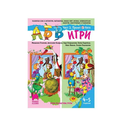 Програмната система "АБВ игри" за втора възрастова група (деца на 4 - 5 години) е основно преработена така, че да отговаря на новите държавни образователни стандарти за предучилищното образование. Съдържанието е оптимизирано и вече е събрано в две книжки и албум. Те са разработени на сезонен принцип ("Есен, зима" и "Пролет, лято") и обхващат всички образователни направления. Форматът им е по-удобен.