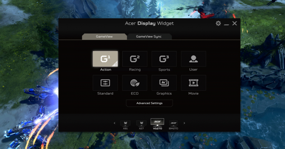 Бързи и лесни настройки за различни игри Няма нужда да натискате бутони. Лесно променяйте настройките на монитора си с помощта на помощния софтуер Display Widget. |