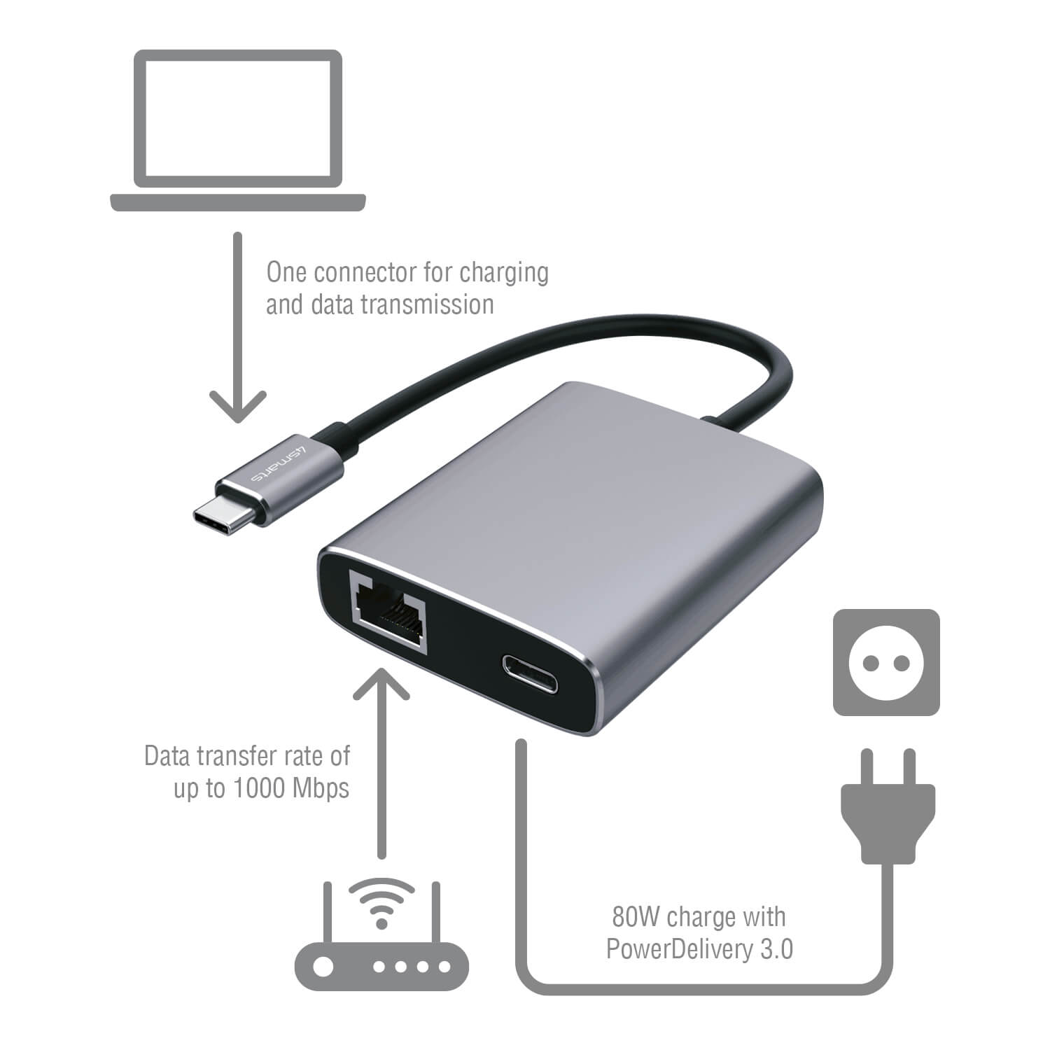 В комплекта: - 1 x 4smarts USB-C to Ethernet adapter, USB-C