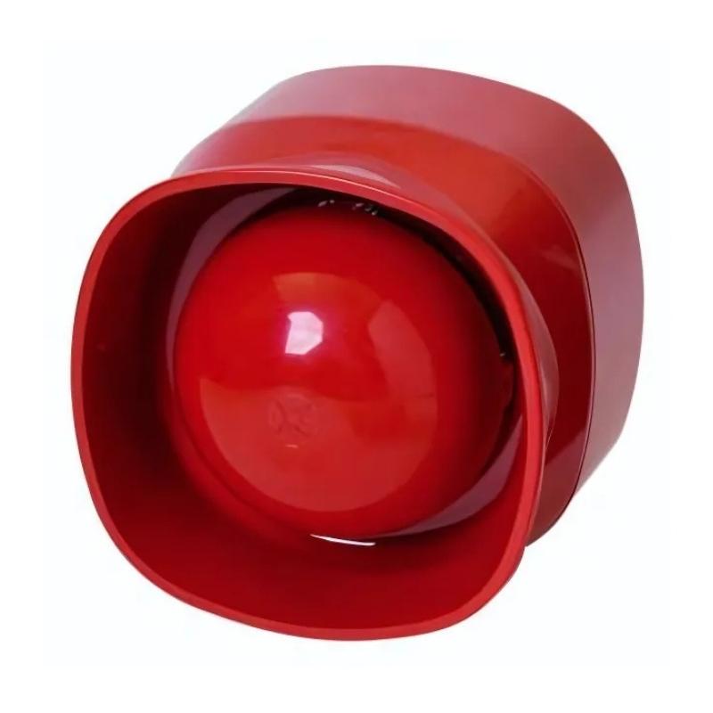 Адресируема мултитонална сирена за монтаж на закрито, цвят червен, 101.3 dB(A), 32 тона, вграден изолатор на късо, комплект с основа, сертифицирана по EN54-3 & EN54-18