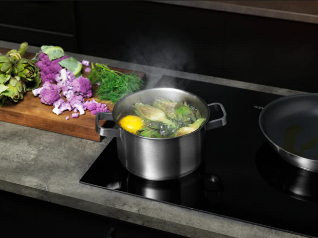 Още по-бързо и по-ефективно нагряване Бързият и мощен индукционен плот осигурява ефективно нагряване. Температурните настройки са бързи и прецизни, което осигурява по-лесно и по-точно готвене. | ![]() |