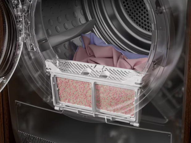 ![]() | Филтър EasyClean. За дълготрайна ефективност Опростете поддръжката на сушилнята си с филтъра EasyClean. Проектиран да се отваря като книга, той улавя мъха за бързо и лесно почистване. Сушилнята ще работи отлично без разхищение на енергия. |