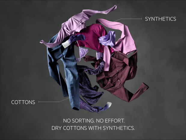 Mixdry. без сортиране. без усилия. изсушава памук и синтетика MixDry лесно и равномерно напълно изсушава синтетични и памучни дрехи без да ги пресушава или недоизсушава. Не е необходимо сортиране. Технологията с термопомпа осигурява точното количество топлина на дрехите, поддържайки ниско ниво на потребление на енергия.