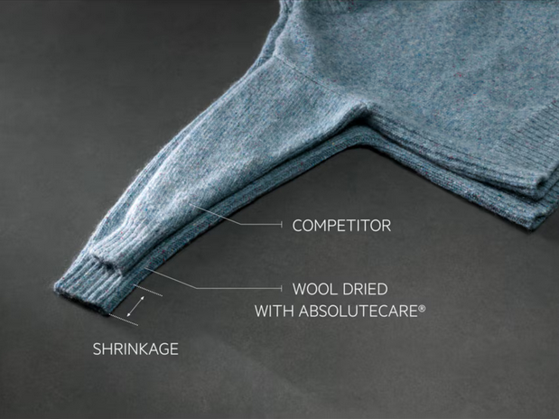 AbsoluteCare гарантира, че дрехите няма да се свият* AbsoluteCare използва технологията на термопомпата, движения на барабана и температури за безопасно сушене и на най-деликатните дрехи. Вълната гарантирано не се свива и коприната запазва формата си. Възстановява водозащитния слой на връхните дрехи и е със сертификат Woolmark Blue. *Сравнимо с плоско сушене. | ![]() |