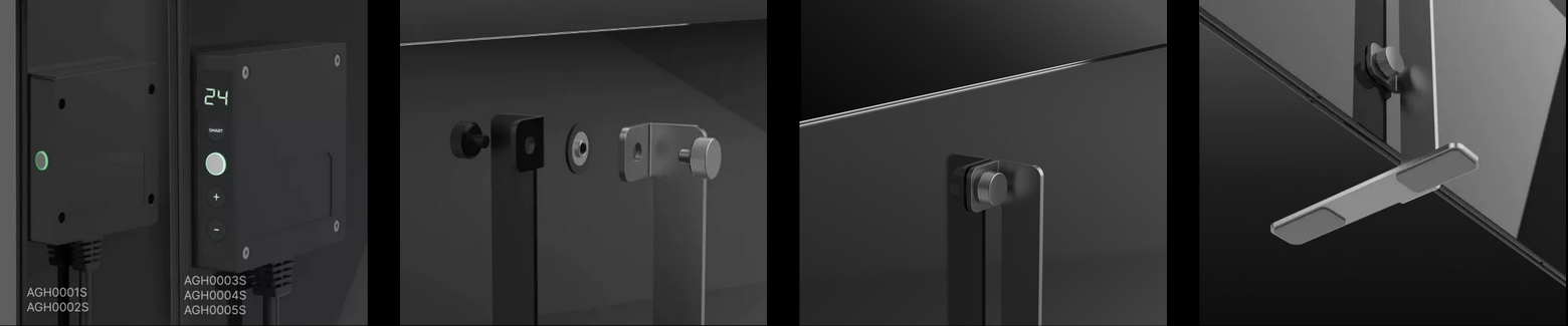 Premium or Premium LED Display with control buttons | Anodized sandblasted real aluminum | Ultra clear enameled tempered glass | Rubber pads |