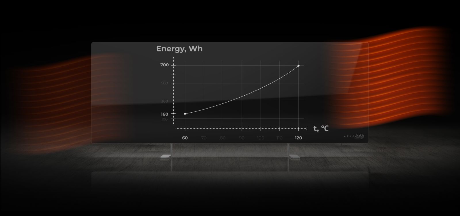 Efficiency 100% uniform distribution of heat in the room, and as a result, energy saving | Environmental Friendliness Does not dry out the air, does not burn oxygen and does not emit harmful substances that affect the well-being and health of people in the room | Safe Technology The heating element provides a smooth start of heating and does not load the network with sudden jumps |