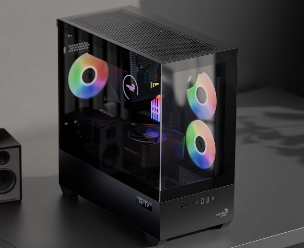 The AeroCool P300D Digi delivers clean aesthetics and powerful functionality for gamers and creators alike. With full tempered glass panels on the front and side, this mini tower case puts your build front and center—perfect for showcasing RGB setups and high-performance hardware. A built-in digital status display adds a modern, functional touch by showing real-time system data directly on the case exterior.