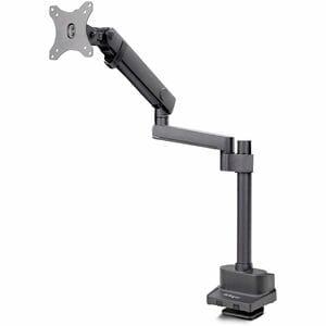 | Marketing Information | This monitor desk mount creates an ergonomic workspace for productivity and supports up to a 40-inch monitor and a maximum weight of 17.6lb (8kg). The robust mechanical spring ensures long-term durability and allows for smooth arm adjustment to suit different ergonomic needs. Top-Down Installation The uniquely design desk clamp simplifies installation by enabling users to tighten the clamp from above using a hex key or a hand drill, eliminating the need to go under the desk. In addition, the desk clamp is designed with a C-clamp and grommet mount to accommodate desks up to 2 inches (50mm) thick, providing flexibility for different desk configurations. Height Adjustment with One Smooth Motion Mechanical spring-assisted arm enables a height adjustment range of up to 17.3in (44cm) to a maximum height of 24.4in (62cm) with effortless one-touch motion. The monitor arm can extend up to 23.3in (59.4cm) from the base of the desktop mount. Range of Motion Articulating arm enables 180° pan, and the quick-release VESA plate features tool-less adjustments of +/-90° horizontal swivel, +/-90° tilt, and 360° screen rotation for portrait or landscape orientations. This flexibility enables users to customize the screen placement for maximum productivity and comfort. Cable Management Features a cable management channel along the underside of the swivel arm to keep cables out of sight. Additionally, multiple cable clips help reduce clutter and contribute to a tidy setup. | |