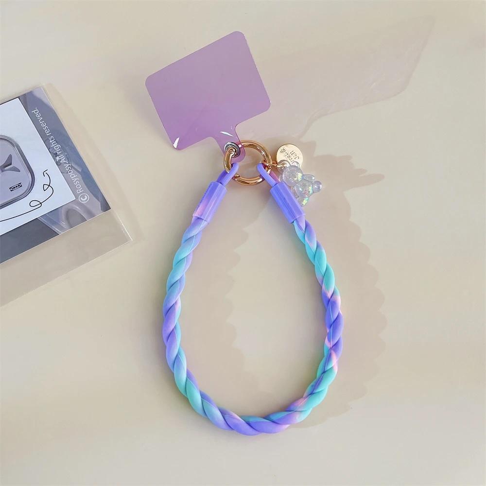 Аксесоар/ Верижка за китка/ Ключодържател Silicone Bear charm /мента + лилав/