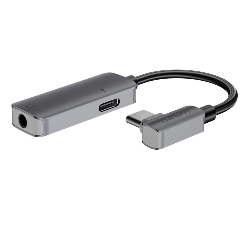 Практичен адаптер, чрез който може да слушате музика (слушалки с 3.5 мм. аудио изход) и да зареждате през USB-C порта едновременно