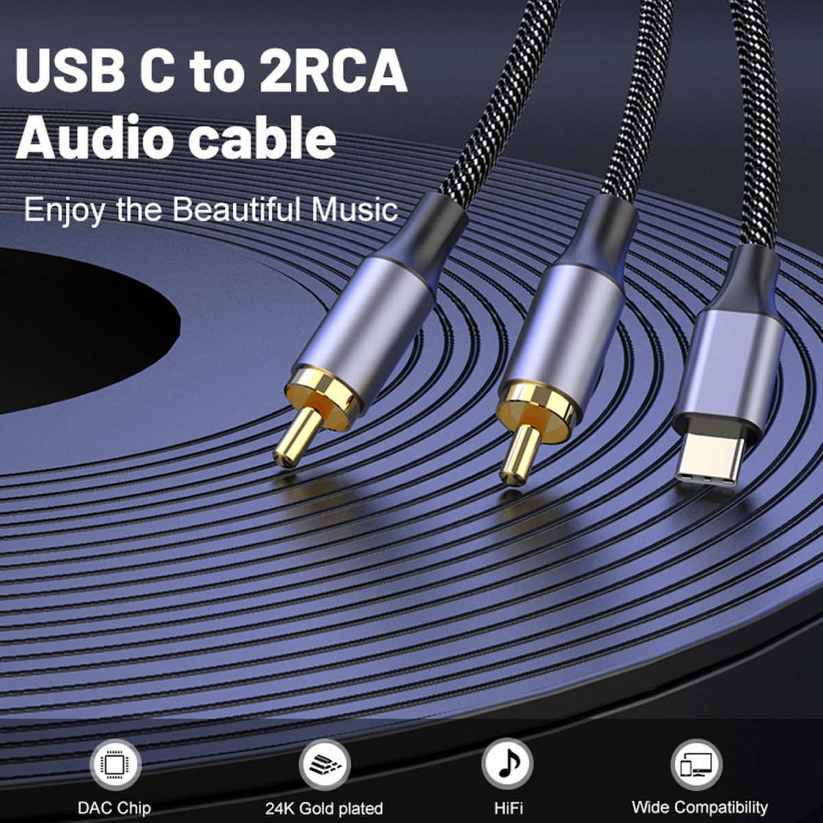 Свързаност: USB-C мъжко към 2xRCA (чинчове) мъжко