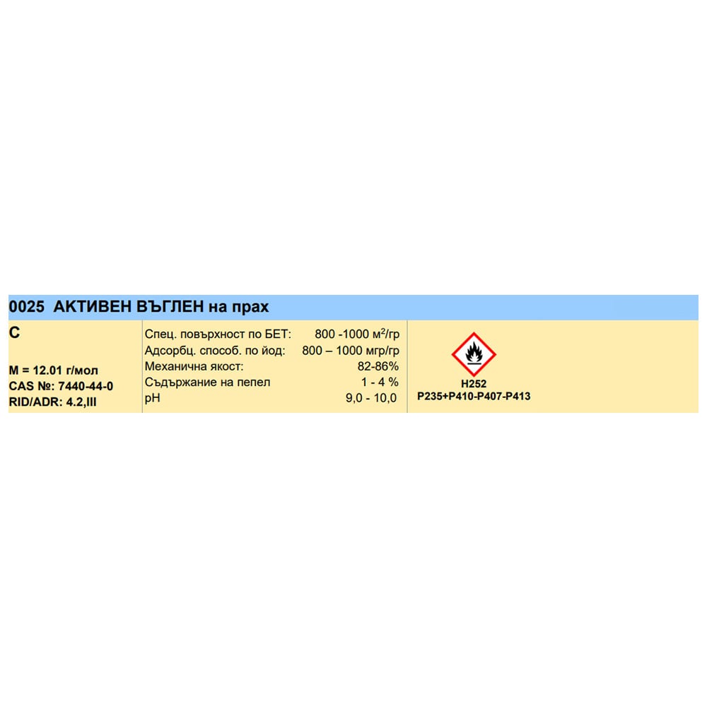 • Активен въглен (C) на прах.