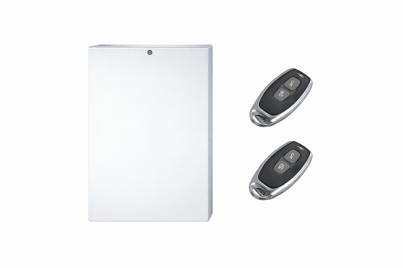 Алармена система за жилище, малък офис или гараж – централа с 3бр. дистанционни със скачащ код. Максимален брой ДУ до 14бр. Две зони, охрана чрез следене на информацията постъпваща от свързаните към алармата детектори (до 40 бр.). Възможност за конфигуриране на една от зоните за 24 часова охрана, вградени тампери на кутията. Вградена сирена (120dB). Изходи за управление на GSM комуникатор или СОТ предавател и допълнителна сирена. Индикация за мрежово захранване, за състояние на системата (вкл./изкл.), за състояние на зона/и и памет на алармени събития. Kомплект с акумулатор 1.2Аh и 2бр. дистанционни.