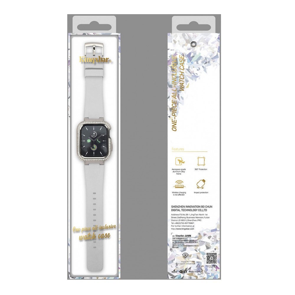 Алуминиев кейс с кристали и вградена силиконова каишка за Apple Watch 40мм, 41мм - Kingxbar Starry Series Strap With Case (сребрист-бял)