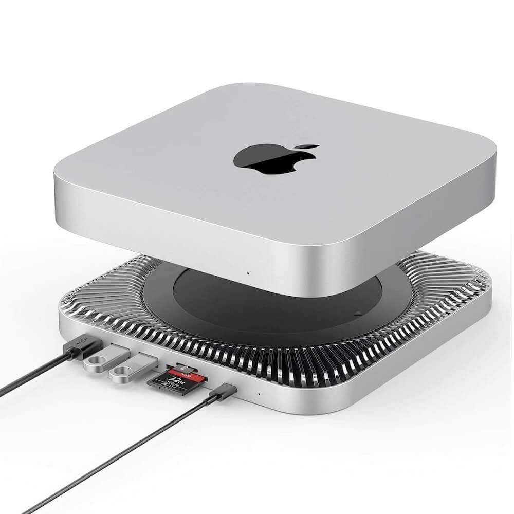 Алуминиева поставка с място за SDD и допълнителен USB-C хъб за Mac Mini - RayCue ExpandPro 7 in 1 USB-C Hub with SSD Enclosure for Mac Mini (сребрист)
