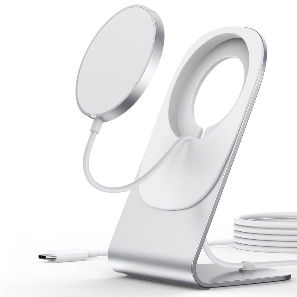 Алуминиева поставка за бюро и поставка (пад) за безжично зареждане на iPhone с MagSafe
