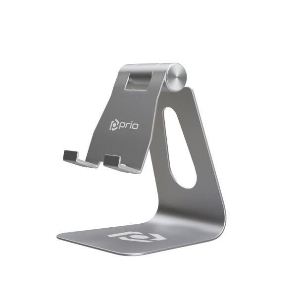 Алуминиева поставка за мобилни телефони и таблети до 9 инча - Prio Metal Smartphone Holder Stand (сребрист)