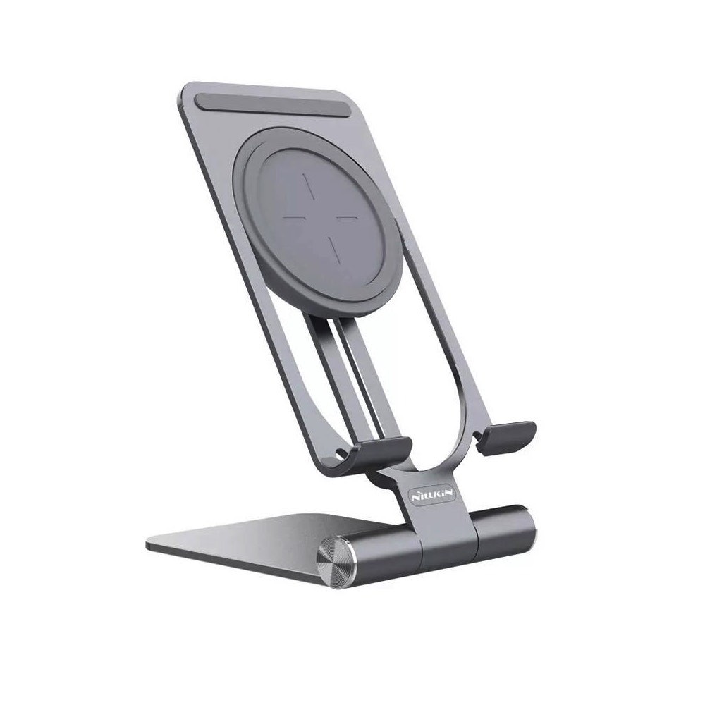 Алуминиева сгъваема поставка за бюро и плоскости за безжично зареждане за iPhone с MagSafe - Nillkin PowerHold Mini Wireless Charging Stand (сребрист)