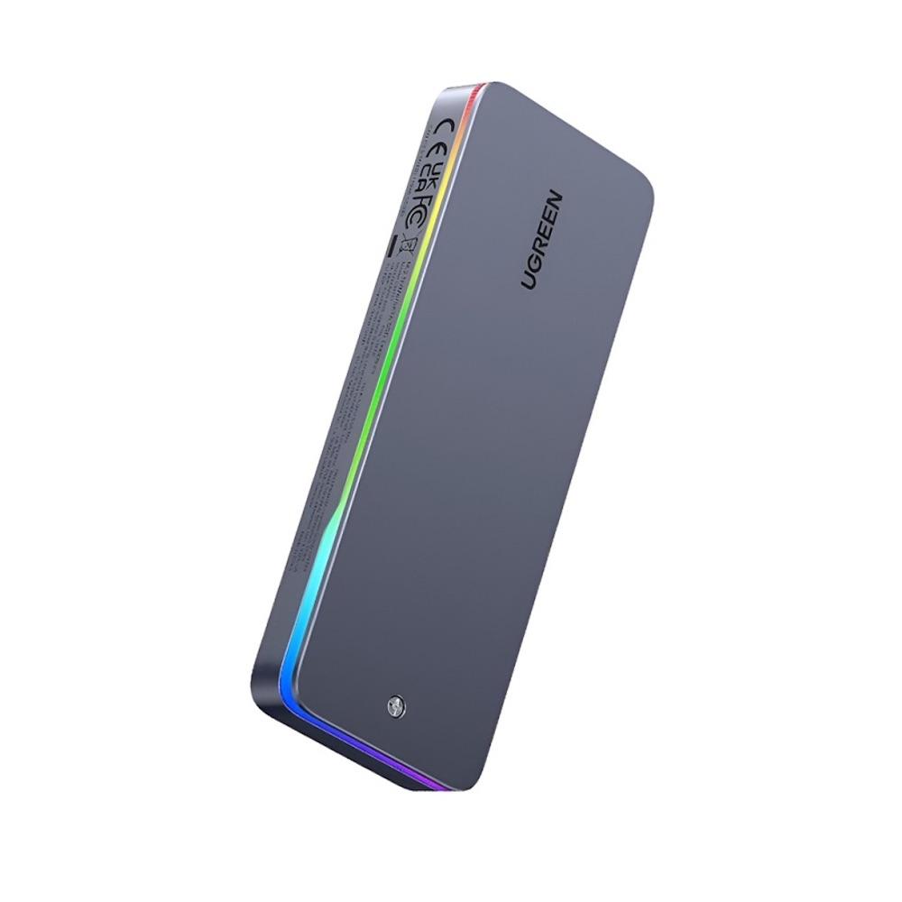 Aлуминиева външна кутия с USB-C за M.2 NVMe SATA SSD дискове и RGB подсветка - Ugreen USB-C External M.2 NVMe SATA SSD Enclosure With RGB Lightning 20Gbps (сив)