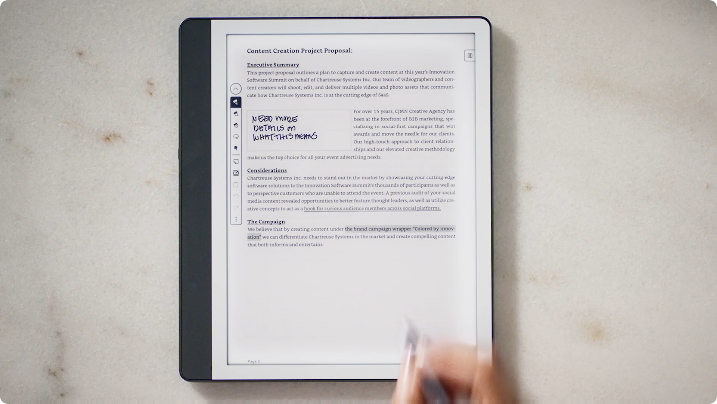 Mark up documents Import and mark up documents and PDFs using Send to Kindle in your desktop web browser, the Kindle app, or send directly from Microsoft Word (Microsoft 365 subscription required). | ![]() |