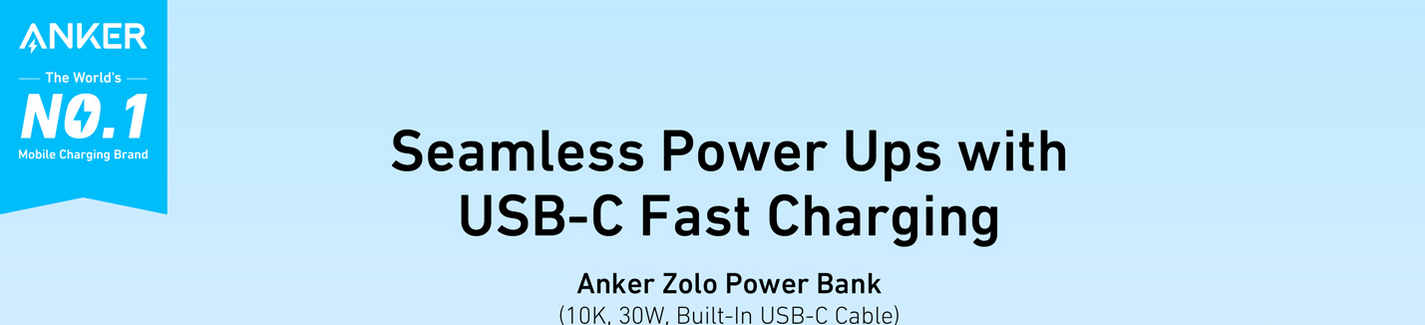 Anker Zolo Power Bank (10K, 30W) with a 5.4-inch (13.7 cm) built-in USB-C cable.