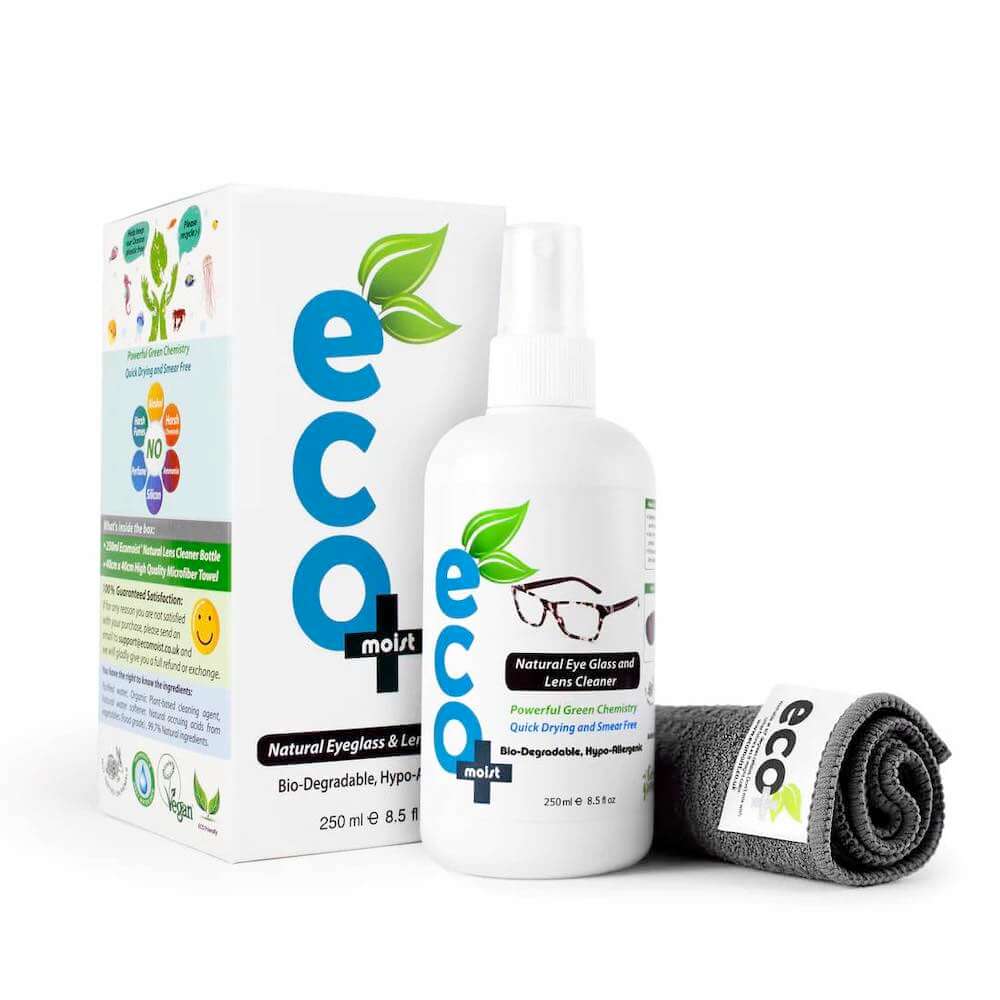 Антибактериален спрей и микрофибърна кърпичка за почистване на очила, лещи за фотоапарати и други - Ecomoist Natural Lens Cleaner Kit with Fine Microfiber Towel 250ml