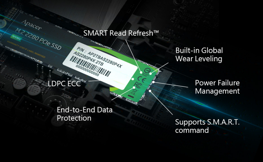![]() | Built-in Protection Technologies Improve Stability And Reliability In order to provide users with a superior high-speed experience, the AS2280P4X adopts SLC Caching technology, using an advanced layered cache structure to improve the performance of the product. And built-in advanced wear leveling technology and automatic error correction functions improve the average lifespan and operational stability of the SSD. |