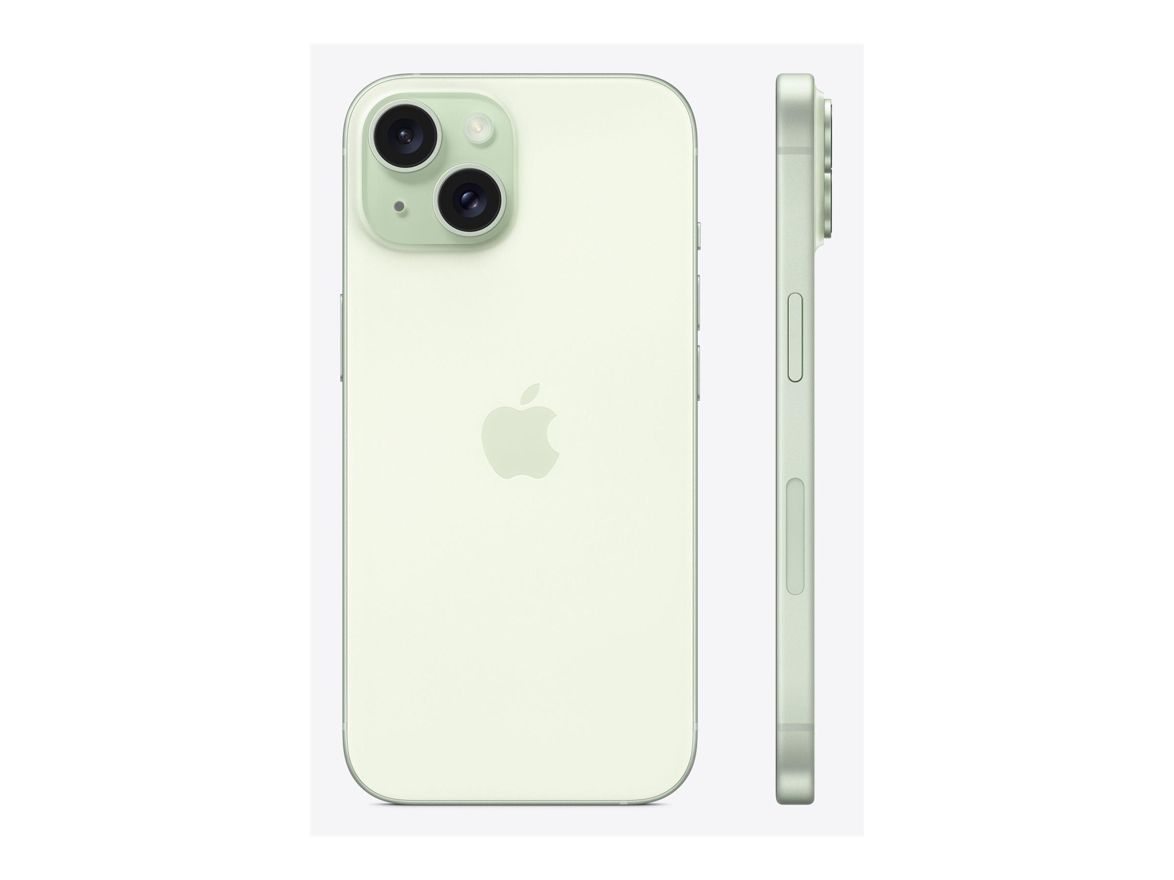 Apple iPhone 15 512GB - Green. Display diagonal: 15.5 cm (6.1"), Display resolution: 2556 x 1179 pixels. Processor family: Apple, Processor model: A16. Internal storage capacity: 512 GB. Rear camera resolution (numeric): 48 MP, Rear camera type: Dual camera. SIM card capability: Dual SIM. Operating system installed: iOS 17. Product colour: Green. Weight: 171 g